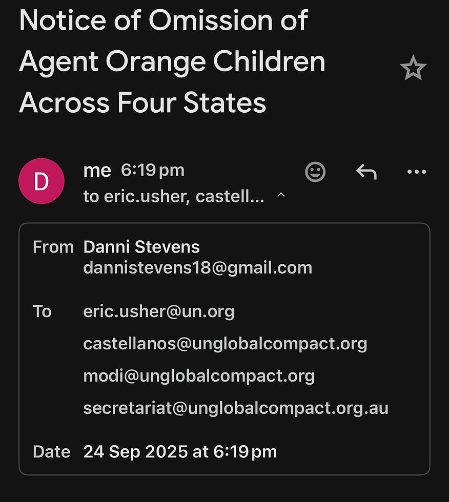 Agent Orange Children exist in at least four countries — Australia, New Zealand, Canada, and the United States. In each of these states, second-generation harm is being systematically omitted and erased from recognition, despite ratified treaties and binding obligations.